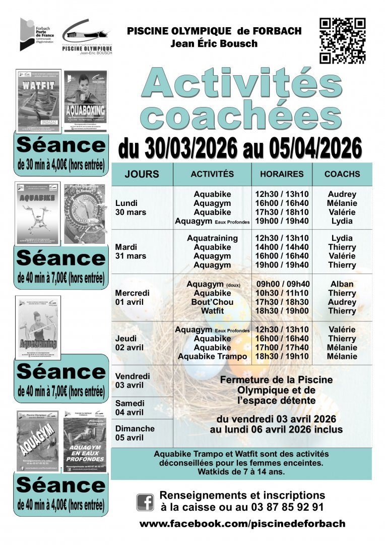 Attention la piscine et l'espace détente seront fermés du 3 au 6 avril 2026 inclus
